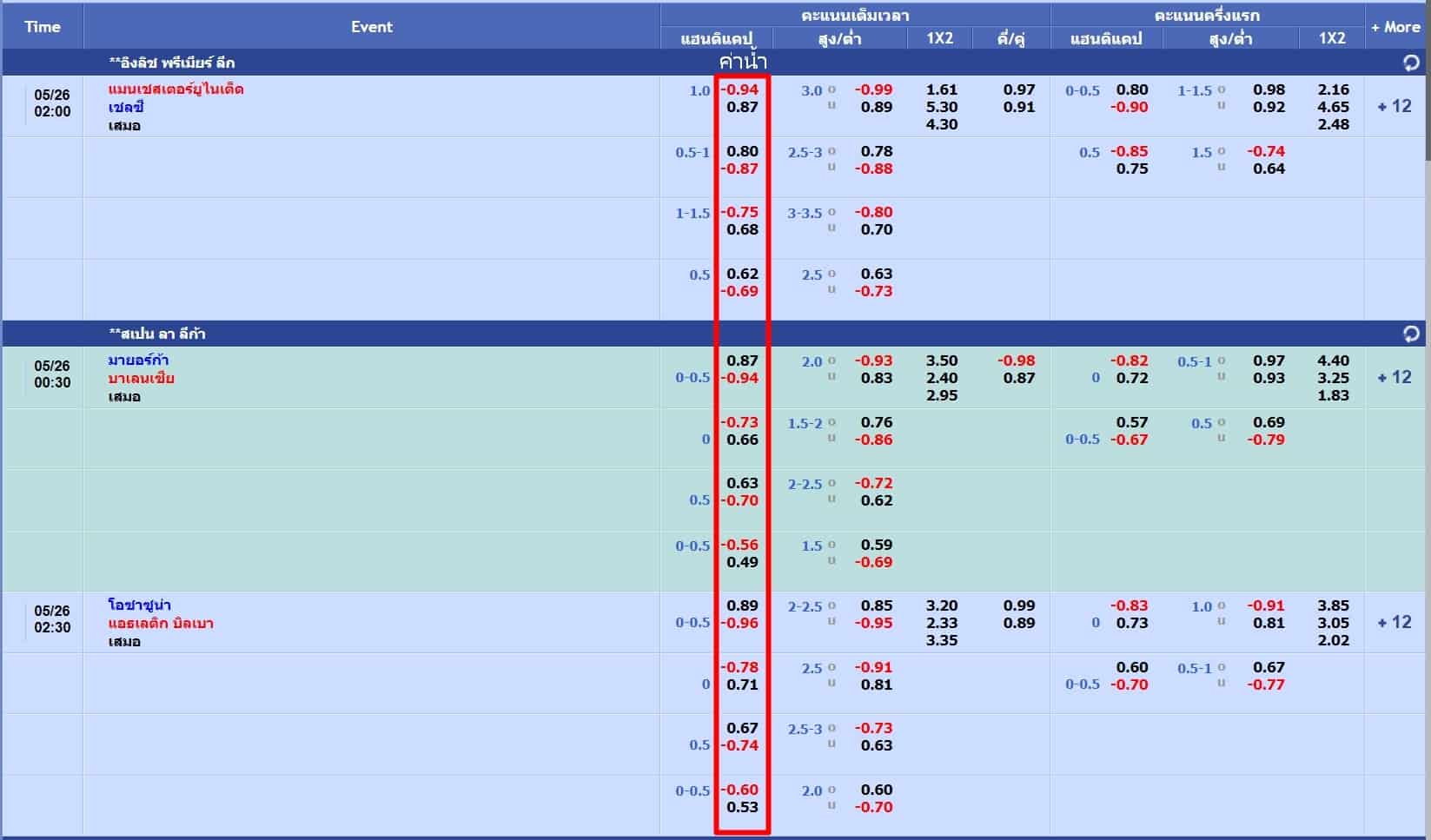 ค่าน้ำบอล ถือเป็นสิ่งสำคัญมากๆ หากคุณต้องการทราบผลตอบแทนที่แท้จริง ในการเล่นแทงบอล แต่ละคู่ เมื่อคุณดูค่าน้ำเป็นคุณจะได้เปรียบในการมองและต่อทุน หรือรับผลประโยชน์สูงสุด เช่น การได้เงินวางเดิมพันคืนส่วนหนึ่ง เพื่อที่จะได้ไปต่อยอดในเกมเดิมพันบิลต่อไป ซึ่งวิธีดูง่ายมาก แค่เพียงมองสัญษลักษณ์ตรงหน้าของราคา บนตารางในเว็บตัวอย่างตามกรณีข้างล่าง