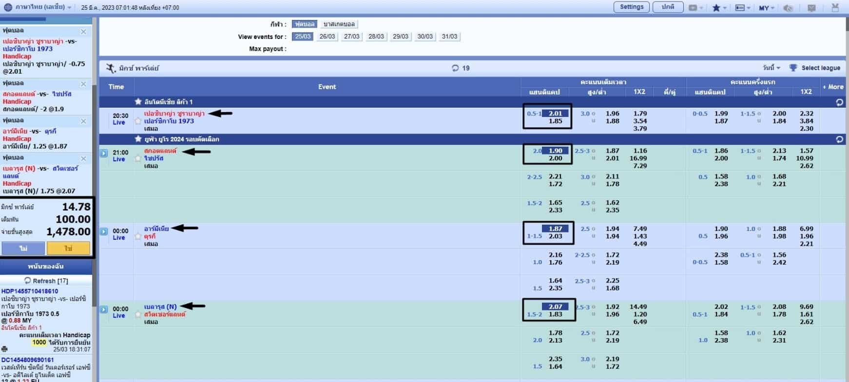 วิธีดู ราคาบอล ทีมต่อ ทีมรอง