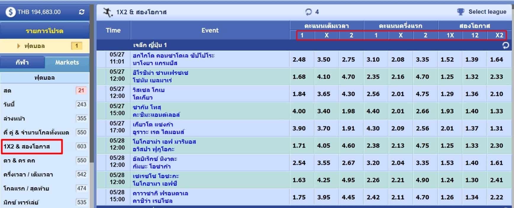 - 1X คือ เจ้าบ้านชนะหรือเสมอ