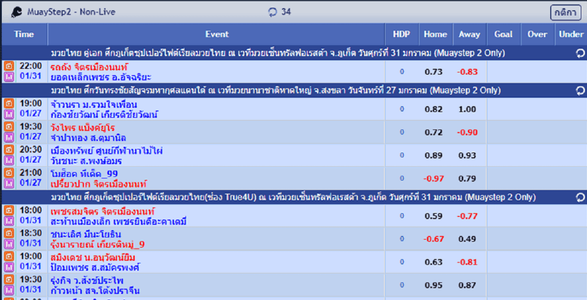 กีฬายอดนิยมที่สามารถแทงได้หลากหลายรูปแบบ อาทิ มันนี่ไลน์, แฮนดิแคป, สูง/ต่ำ, คี่/คู่ และทายผลผู้ชนะ